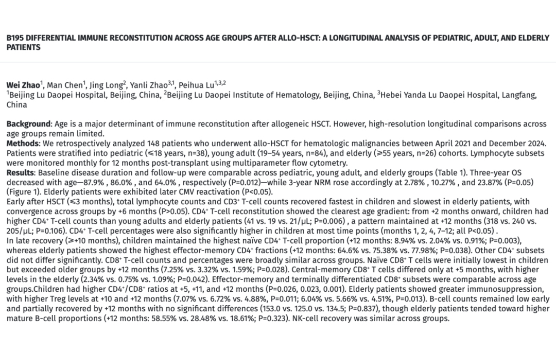 第52届欧洲血液和骨髓移植学会(EBMT)年会重磅研究摘要公布!在本次大会中,陆道培医院陆佩华、赵玮、陈曼教授的一项题为“异基因造血干细胞移... 【详情】