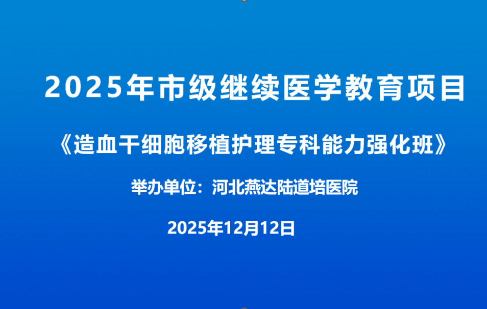 2025年12月12日,由燕达陆道培医院护理部承办的2025年廊坊市继续教育项目——《造血干细胞移植护理专科能力强化班》(2025-14-0... 【详情】