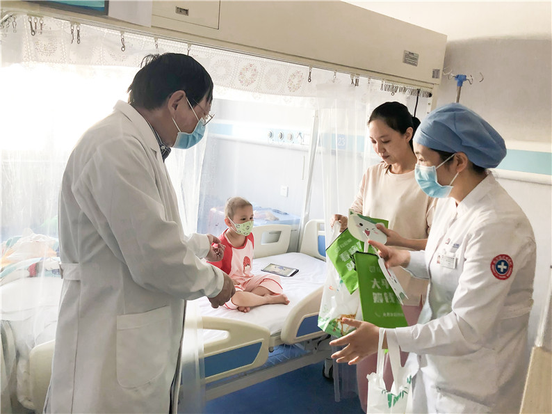 燕达陆道培医院血液一病区张弦主任为住院患儿发礼物