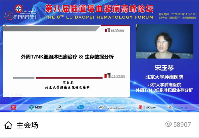 北京大学肿瘤医院宋玉琴教授,讲座题为《外周T/NK细胞淋巴瘤治疗&生存数据分析》