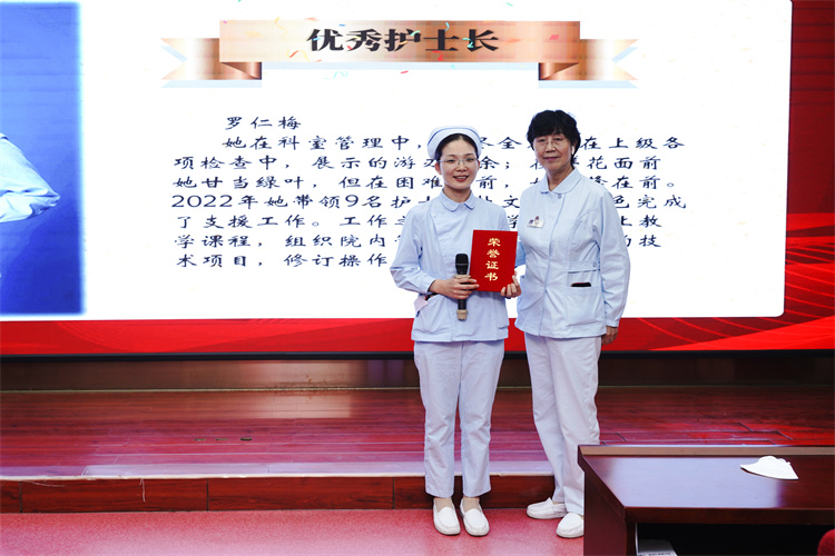 陆佩华院长和卢岳主任为优秀护士颁奖
